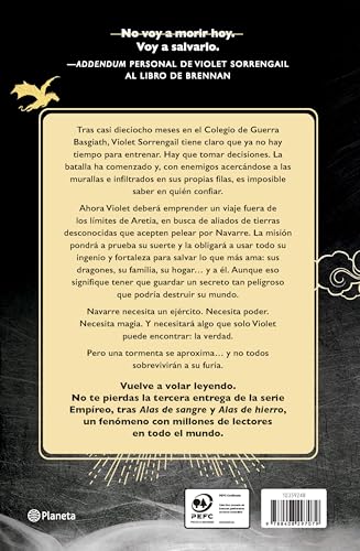 Tras casi dieciocho meses en el Colegio de Guerra Basgiath, Violet Sorrengail tiene claro que ya no hay tiempo para entrenar. Hay que tomar decisiones. La batalla ha comenzado y, con enemigos acercándose a las murallas e infiltrados en sus propias filas, es imposible saber en quién confiar.